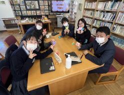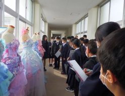 12月11日(水)、三方小学校6年生の皆さんが、本校に来てくれました。普通科の説明は本校2年1ホームの生徒が担当し、シアターで一緒に座談会とクイズ大会をしました。班ごとの校内見学の後、生活情報科、食物科の見学もしました。