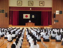 7月20日(木)、1学期の終業式が行われました。校長先生からは「何ごともプラス思考で考えましょう」「命を健康を守りましょう」と式辞がありました。詳細はこちら→1学期終業式また、1学期に部活動で活躍した生徒への伝達表彰式が行われました。
