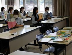10月3日、保育実習に向けて、若狭町の保育所長さんたちから、絵本の読み聞かせについて講義をしていただきました。絵本の役割や読み方の注意点、子どもの様子についてなど、詳しく話をしていただきました。説明の話し方にも、保育士さんらしい優しさや丁寧さがあり、対応する年齢の違いを改めて感じていました。