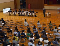 5月21日(土)、令和4年度PTA総会を開催しました。コロナ感染症対策として、当初予定していた内容を短縮して、3年ぶりに第一体育館で行いました。 総会では令和3年度行事・会計決算報告、令和4年度行事案・予算が審議されました。