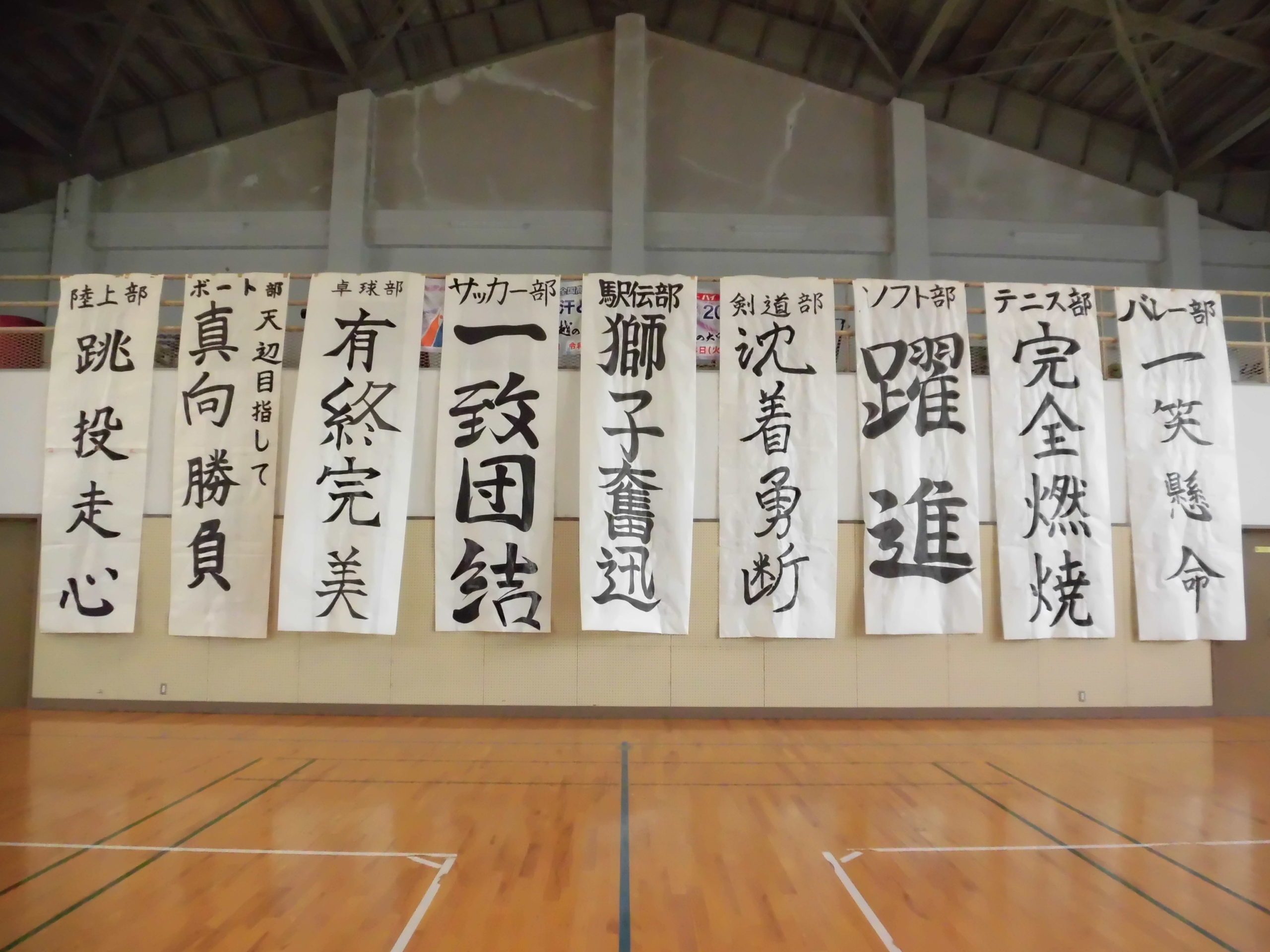 5/14(金)、高校総体の壮行式が行われました。運動部の3年生の多くにとっては、総仕上げの大会となります。各部の部長から「このような状況の中で、大会ができることに感謝し、精一杯頑張ってきます。」「今まで練習してきたことを十二分に発揮して、正々堂々戦ってきます。