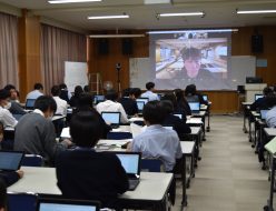 立命館大学でゲーム文化の研究をされているビンセンゾ先生が来校されました。ビンセンゾ先生は1年Rホーム、2年Tホームの生徒を対象に、人類史におけるゲームの役割や、日本のアーケードゲーム施設の推移、ゲームに対する世間の意識、日本のゲーム文化を語るのに欠かせない人物等についてお話しくださいました。