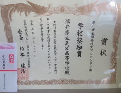 全国高校生プレゼン甲子園は、テーマについて深く考察し、自分の考えや念い(おもい)を「伝える」ことで、論理的思考力、表現力、創造力等を養うことを目的としています。本校生徒のプレゼン甲子園に対する積極的な取り組みが認められ学校奨励賞受賞を受賞できました。