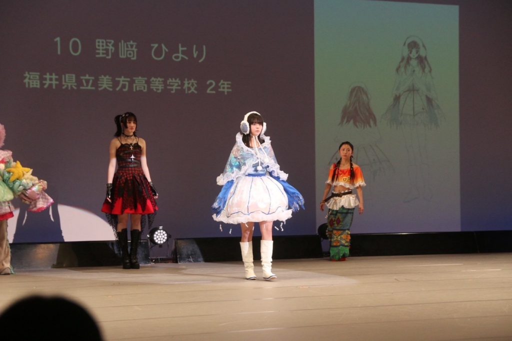 本番のステージでは、野﨑さん自身がモデルとなり、大きな舞台を堂々と歩きながら観客に作品をアピールしました。